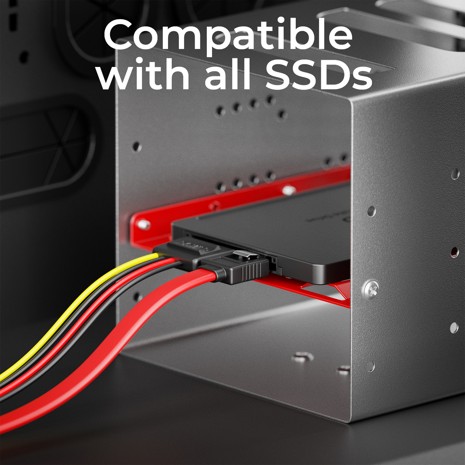 Geeignet für alle 2,5" SSDs und HDDs sowie alle Standard-PC-Gehäuse. Unterstützt SATA I, II und III Verbindungen.
