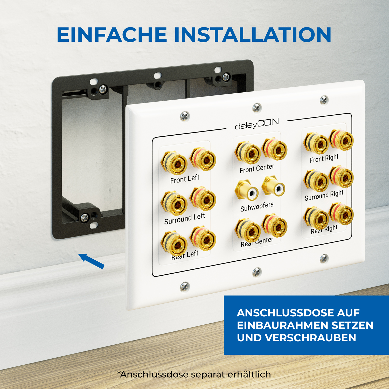 deleyCON Multimedia Lautsprecher Anschlussdose für 5.1 Surround Sound System