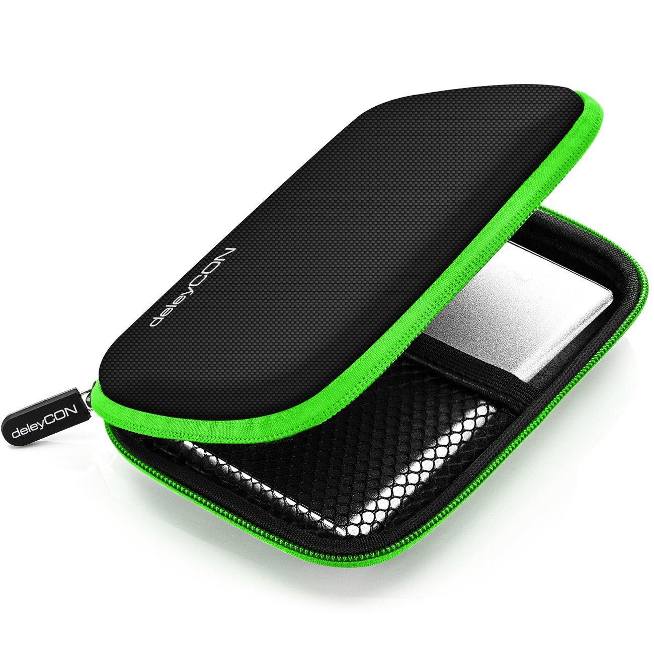 deleyCON Festplattentasche Case für 2,5 Zoll HDD SSD 2 Fächer Schwarz Grün