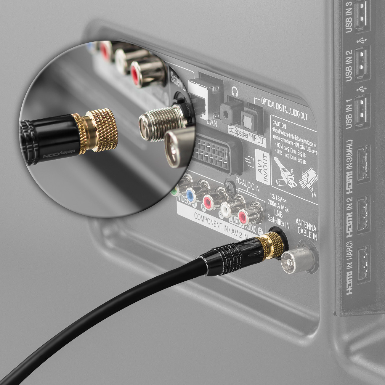 Verbinden Sie z.B. Ihren Satellitenempfänger/Fernsehgerät mit dem Haus-Satellitenanschluss.