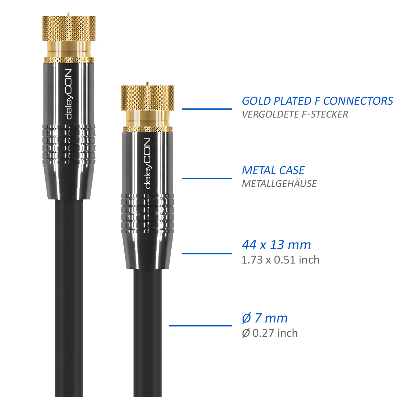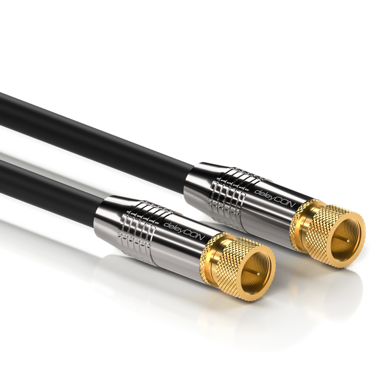 deleyCON HDTV SAT Antennenkabel 12,5m Schwarz - F-Stecker zu F-Stecker - METALL