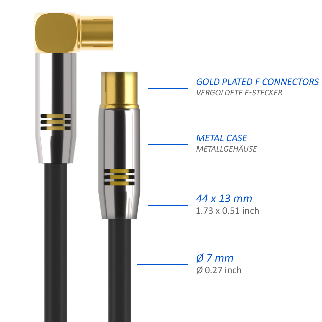 deleyCON HDTV TV Antennen Kabel 10m - 1x 90° gewinkelt 10m Stecker zu Buchse