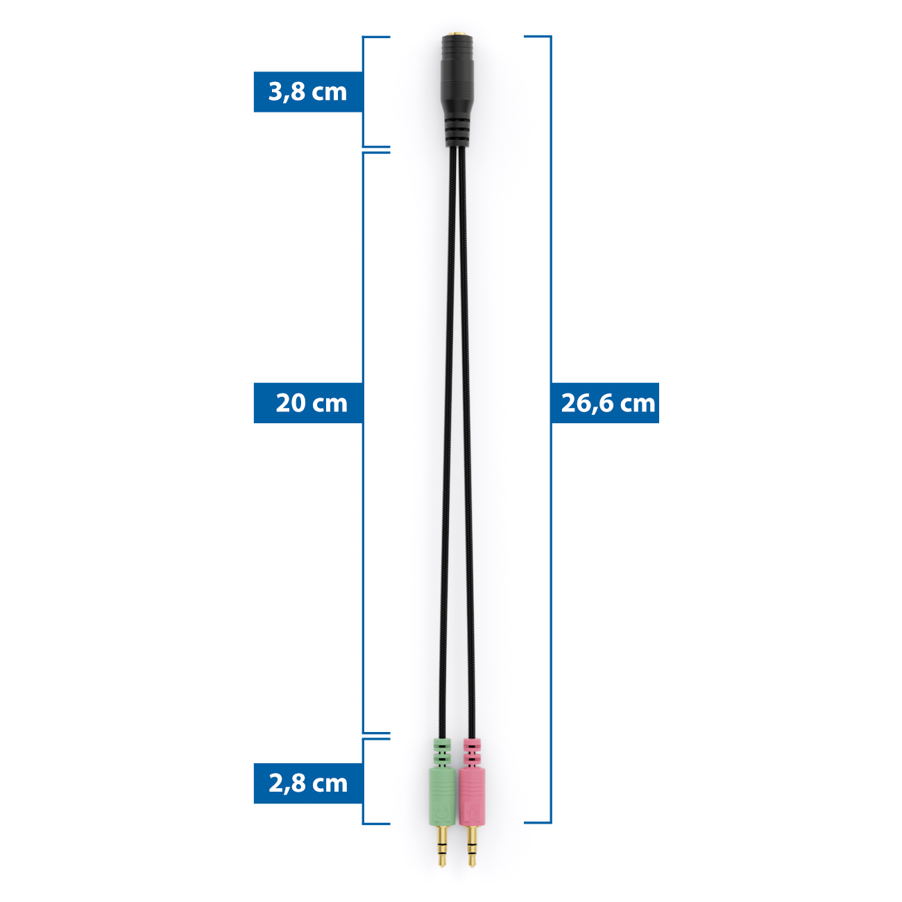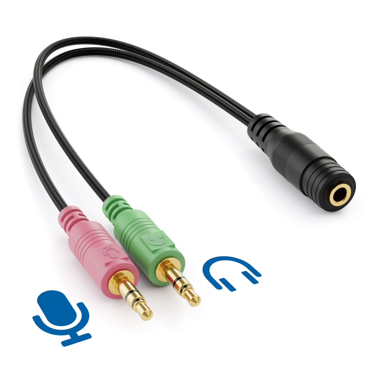 Mit dem hochwertigen deleyCON Stereo Audio Klinken Y Adapter Kombi Kabel können z.B. Smartphone Headsets an einen PC, Laptop oder Notebook mit getrennten Eingängen für Kopfhörer und Mikrofon angeschlossen werden. Headsets mit 3,5mm Kombi Klinken Anschluss an Geräte mit getrennten Eingängen (Kopfhörer/Mikrofon) anschließen.