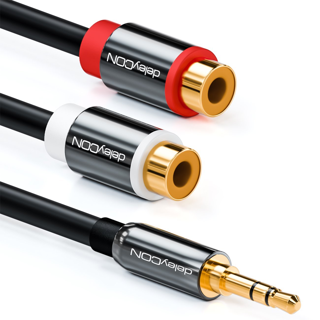 deleyCON HQ Cinch zu Klinken Adapter- 3,5 Klinken Stecker zu 2x RCA Cinch Buchse