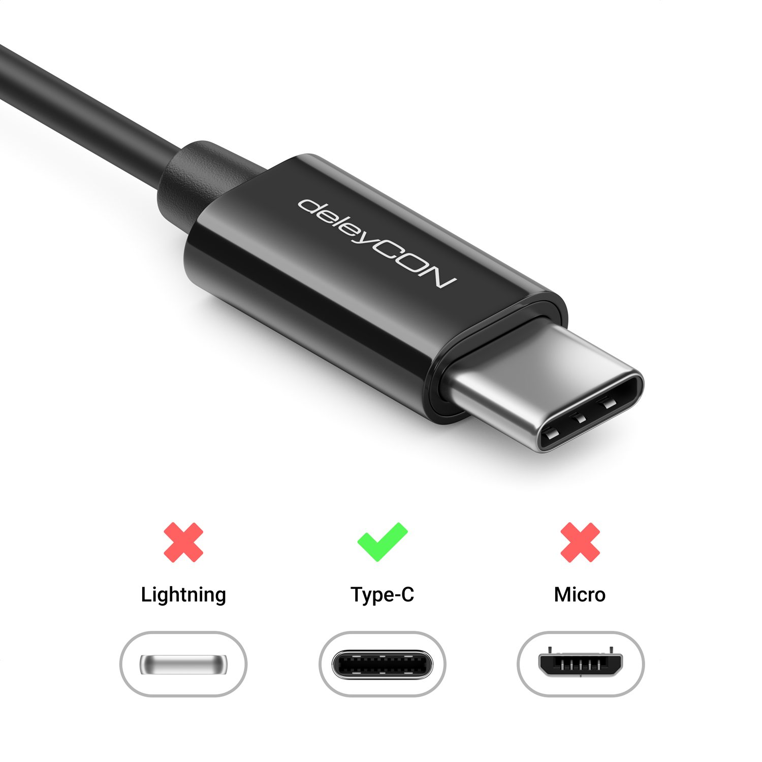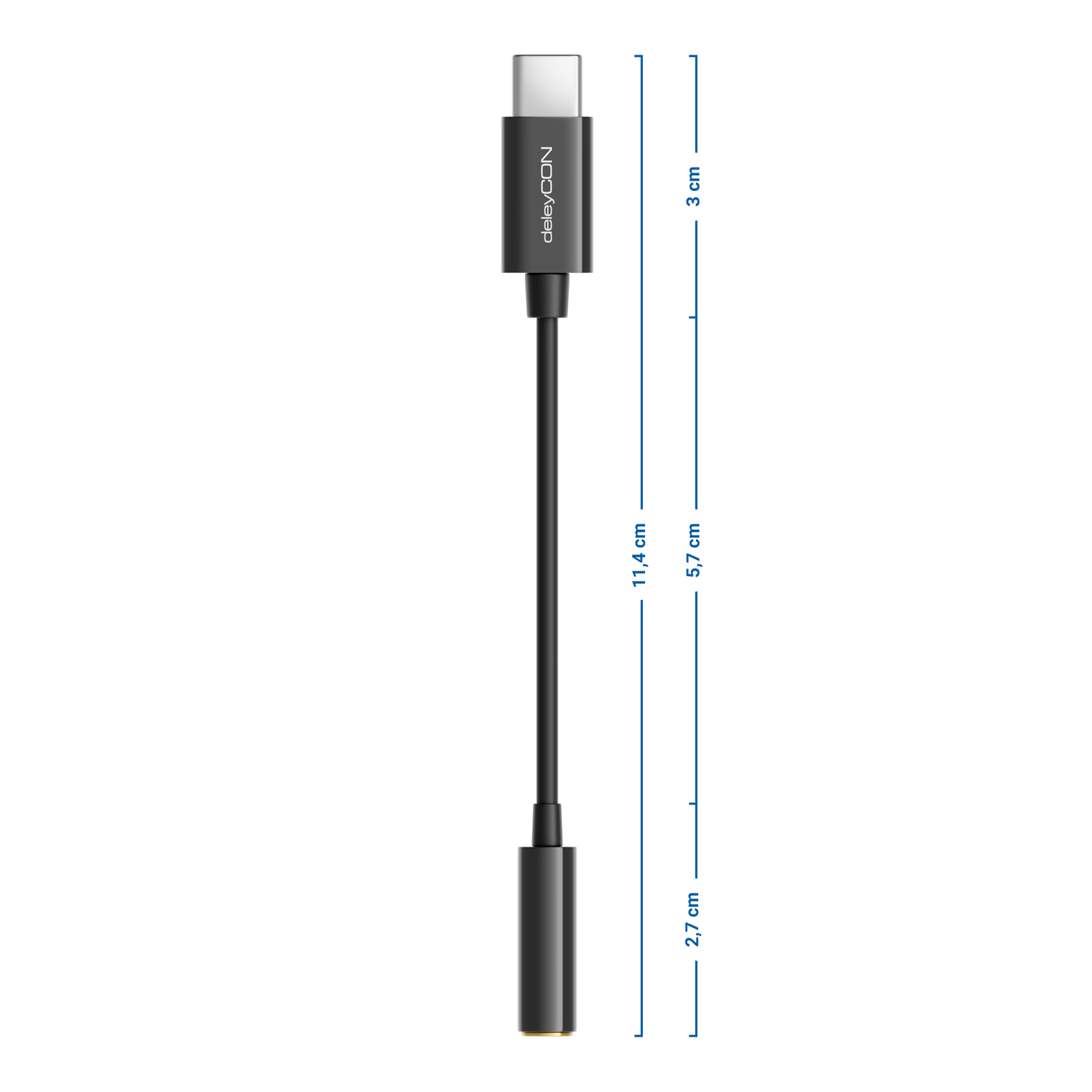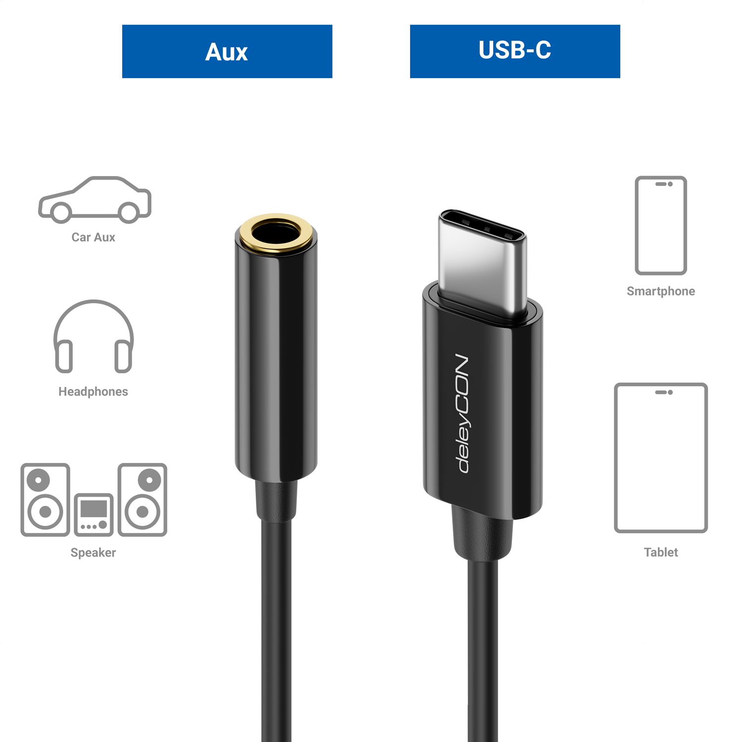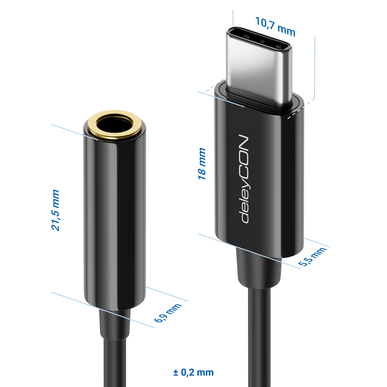deleyCON Kopfhörer Adapter USB C auf 3,5mm Klinke AUX Smartphones 10cm Schwarz