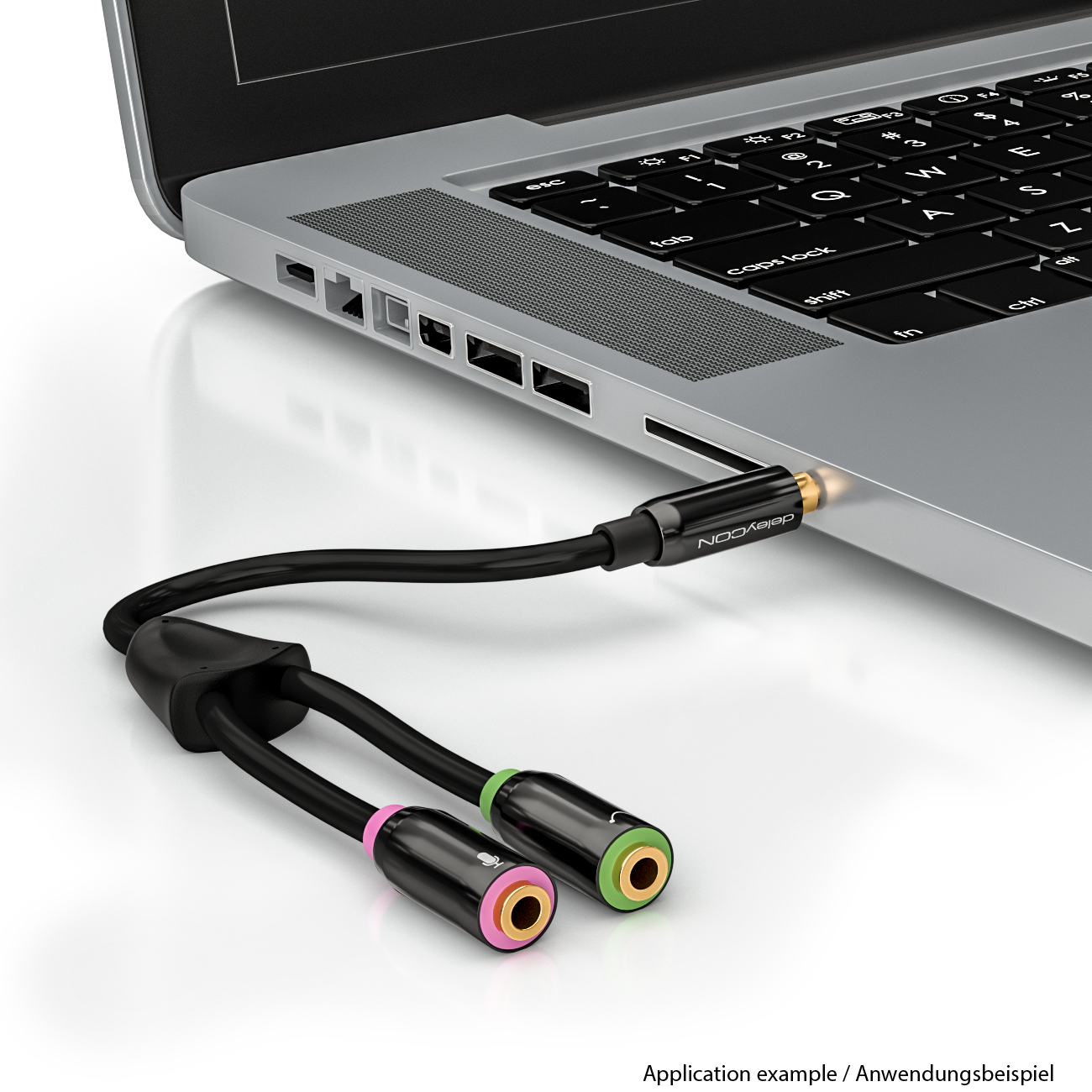 deleyCON Headset Laptop Adapter 1x3,5mm Klinke Buchse auf 2x3,5mm Klinke Stecker