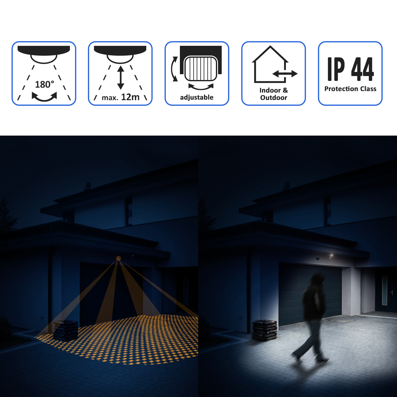 Schützen Sie den Bereich um Ihr Haus herum, sorgen für eine automatische Beleuchtung im Eingangsbereich oder als ideale Licht-Erweiterung im Keller – die Einsatzmöglichkeiten sind nahezu unbeschränkt.