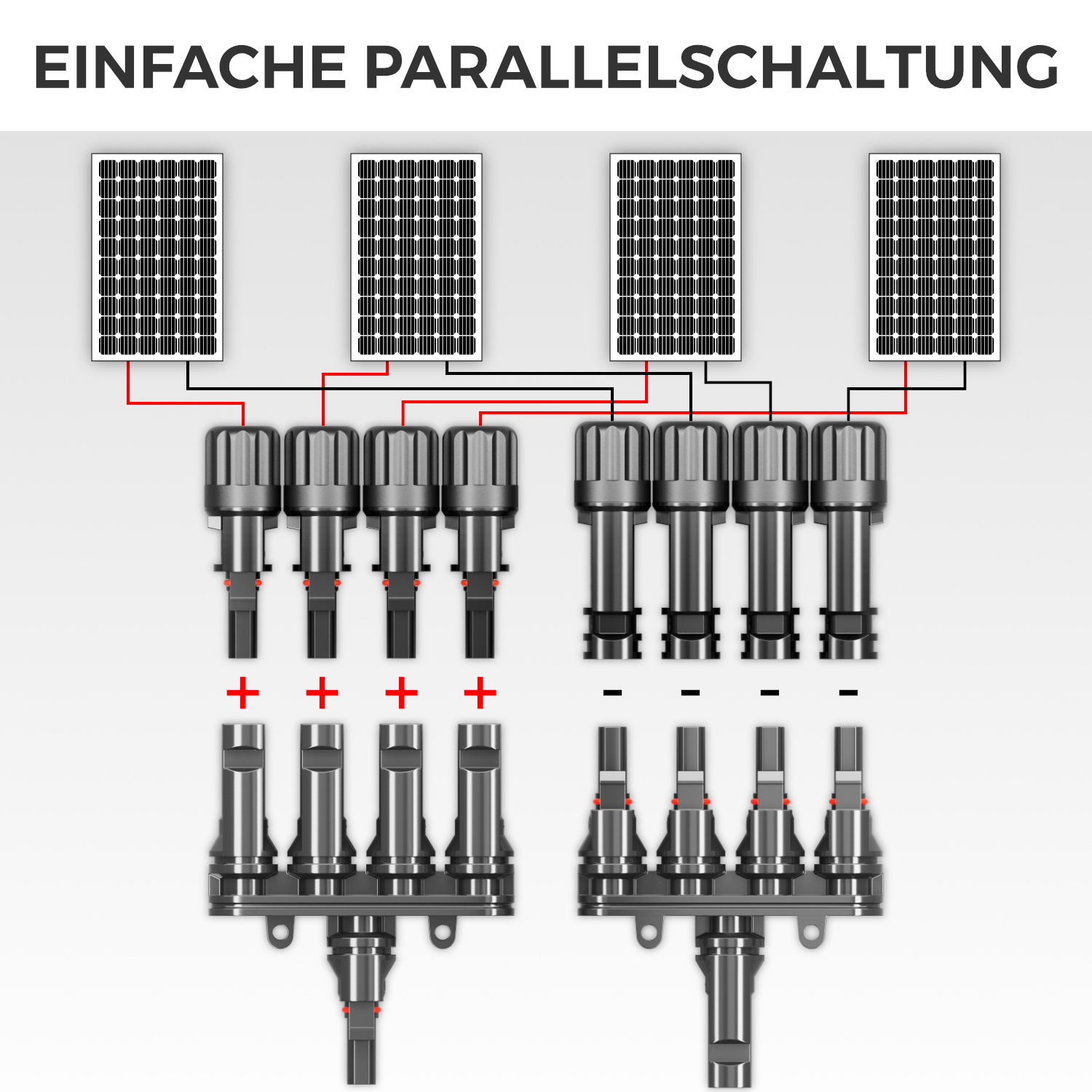 Die PV4 Solar Y Stecker eignen sich hervorragend für den Einsatz in Solaranlagen, bei denen mehrere Photovoltaik-Module parallel geschaltet werden müssen. Ob im privaten oder gewerblichen Bereich – diese Verteiler bieten eine sichere und einfache Lösung für die Installation und Erweiterung von Solarmodulen.
