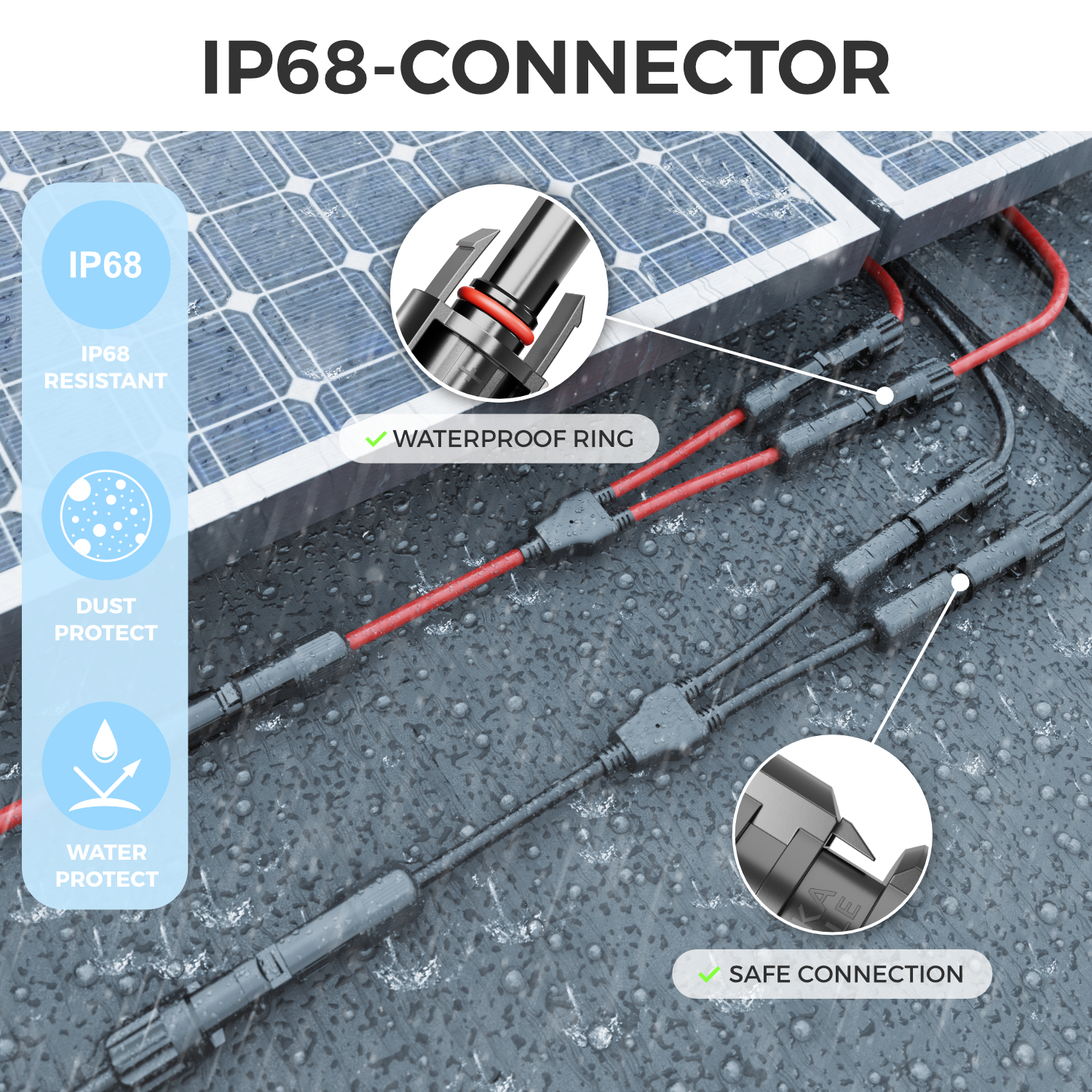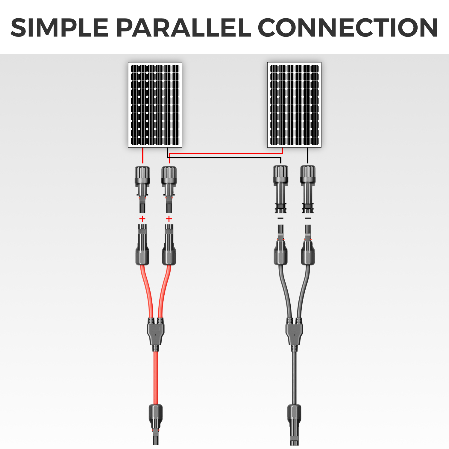 Das solar Y-Kabel Adapter Set ist die ideale Lösung für den sicheren Anschluss von Photovoltaik-Modulen in Parallelschaltung.