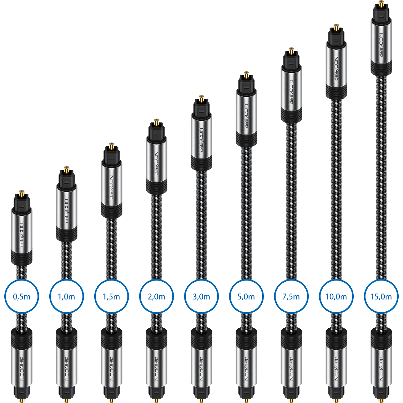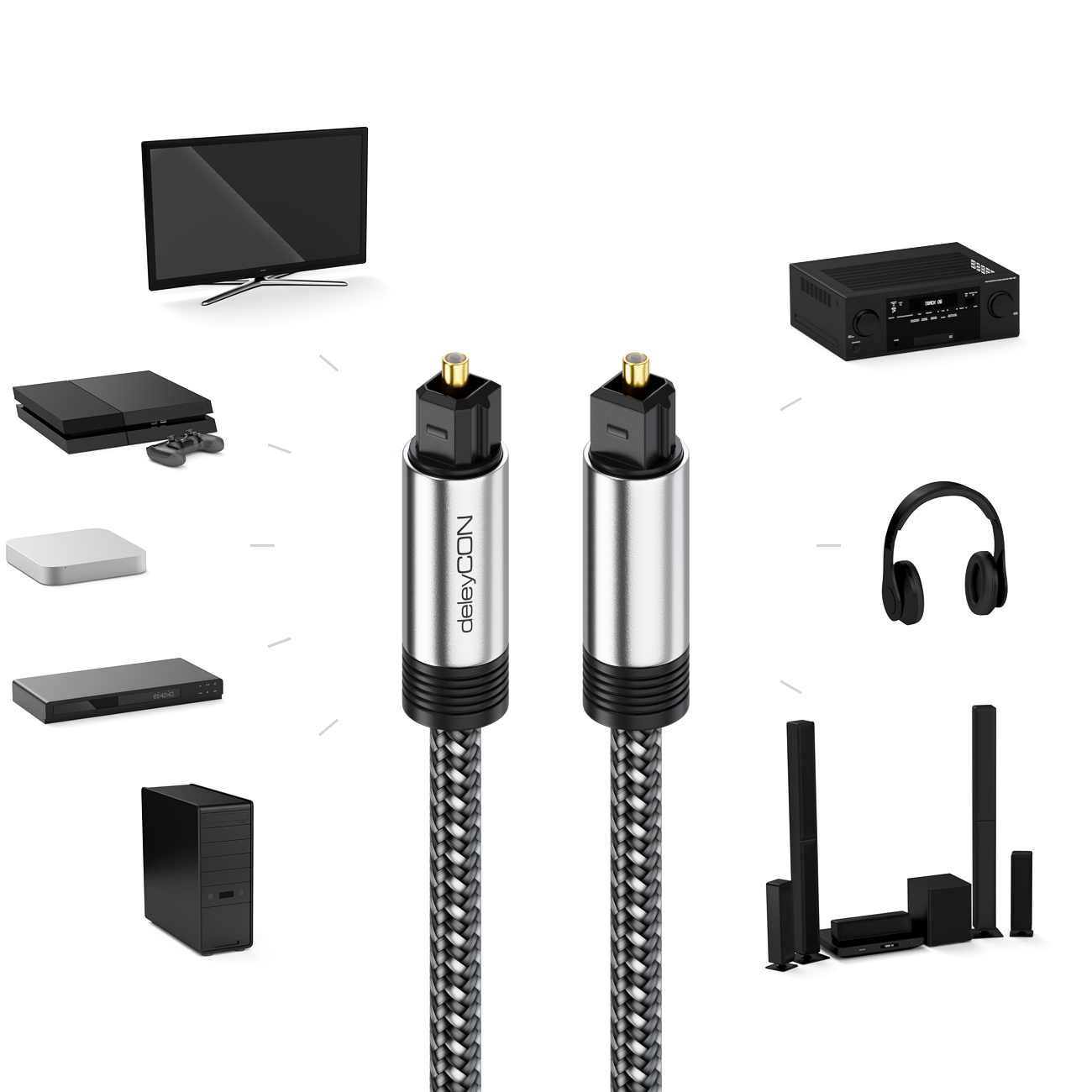 - deleyCON Toslink Kabel mit Metallstecker und Nylonmantel