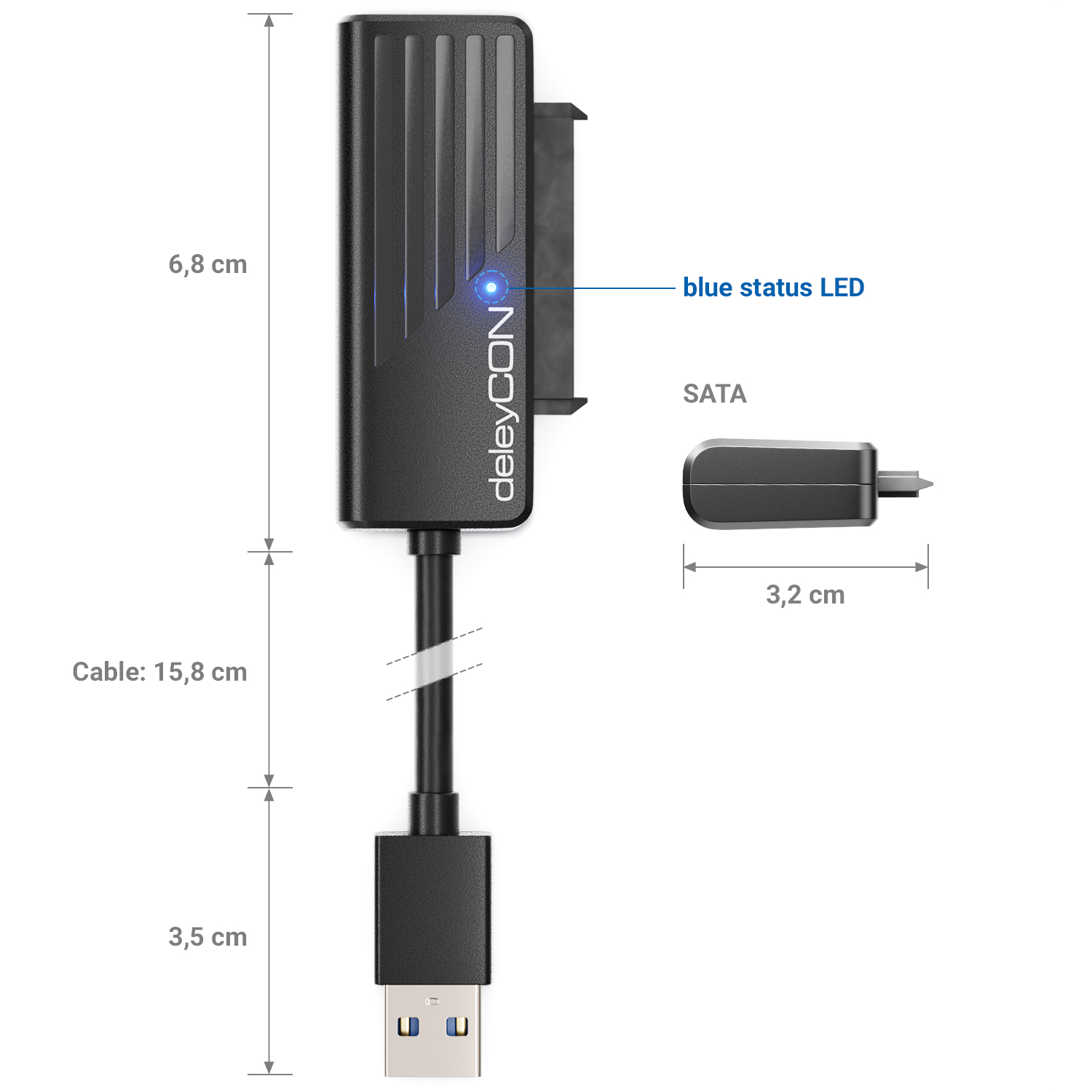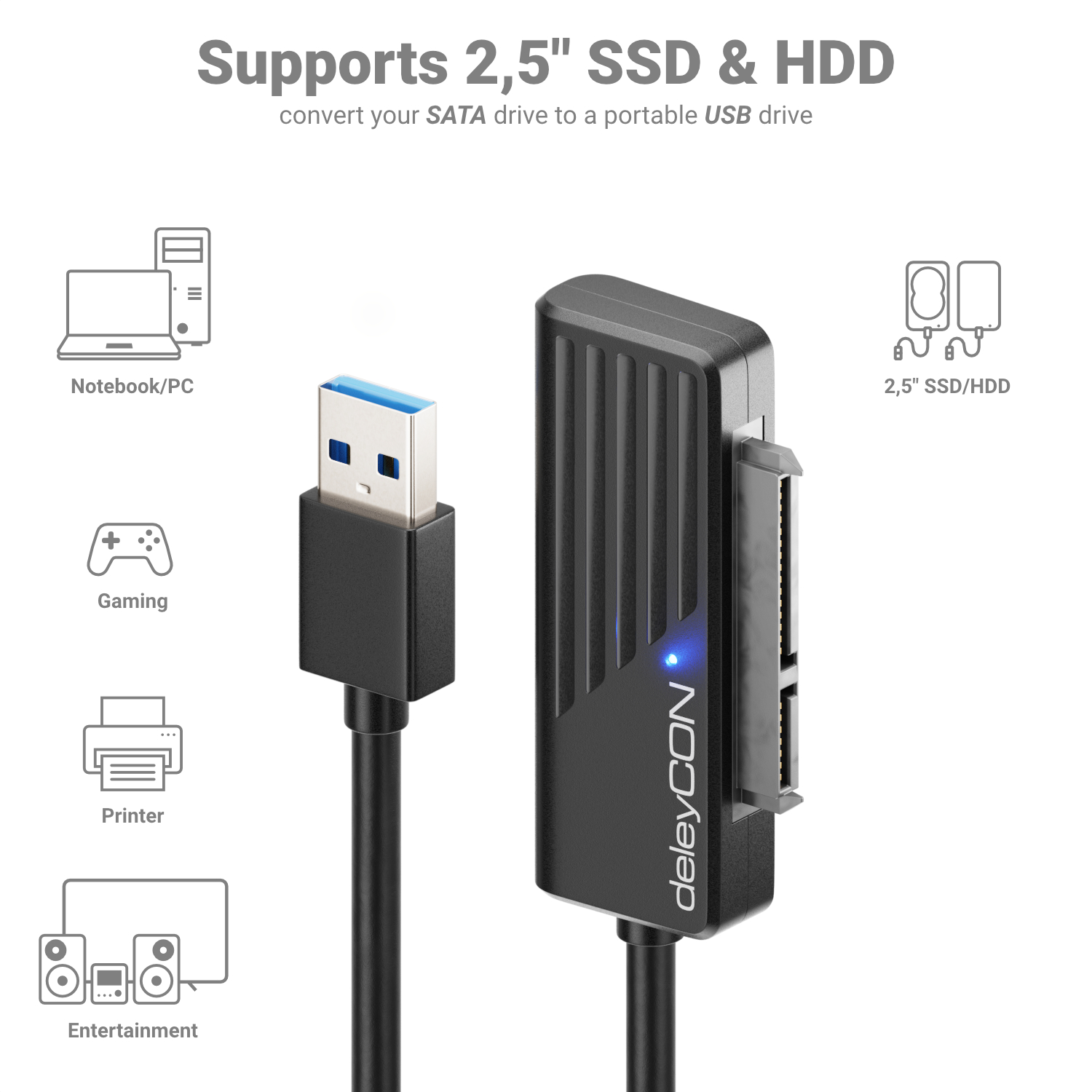 deleyCON USB 3.0 SATA Adapter Kabel USB A zu 2,5" Festplatten HDD SSD 5GBit/s