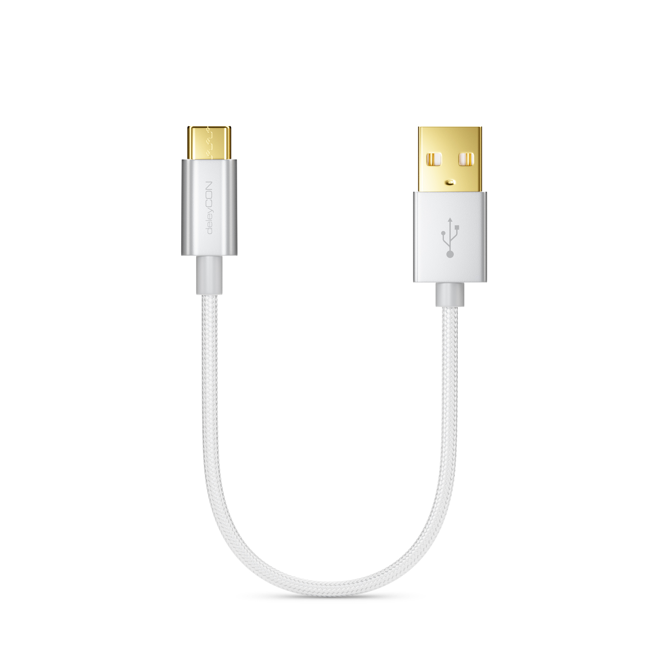 deleyCON USB C Kabel 0,15m Nylon + Metallstecker auf USB 2.0 (Typ-A) - Silber