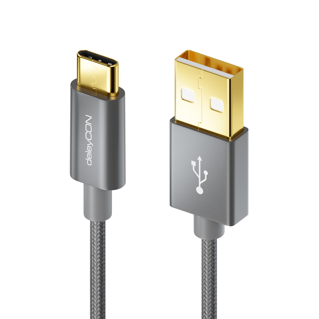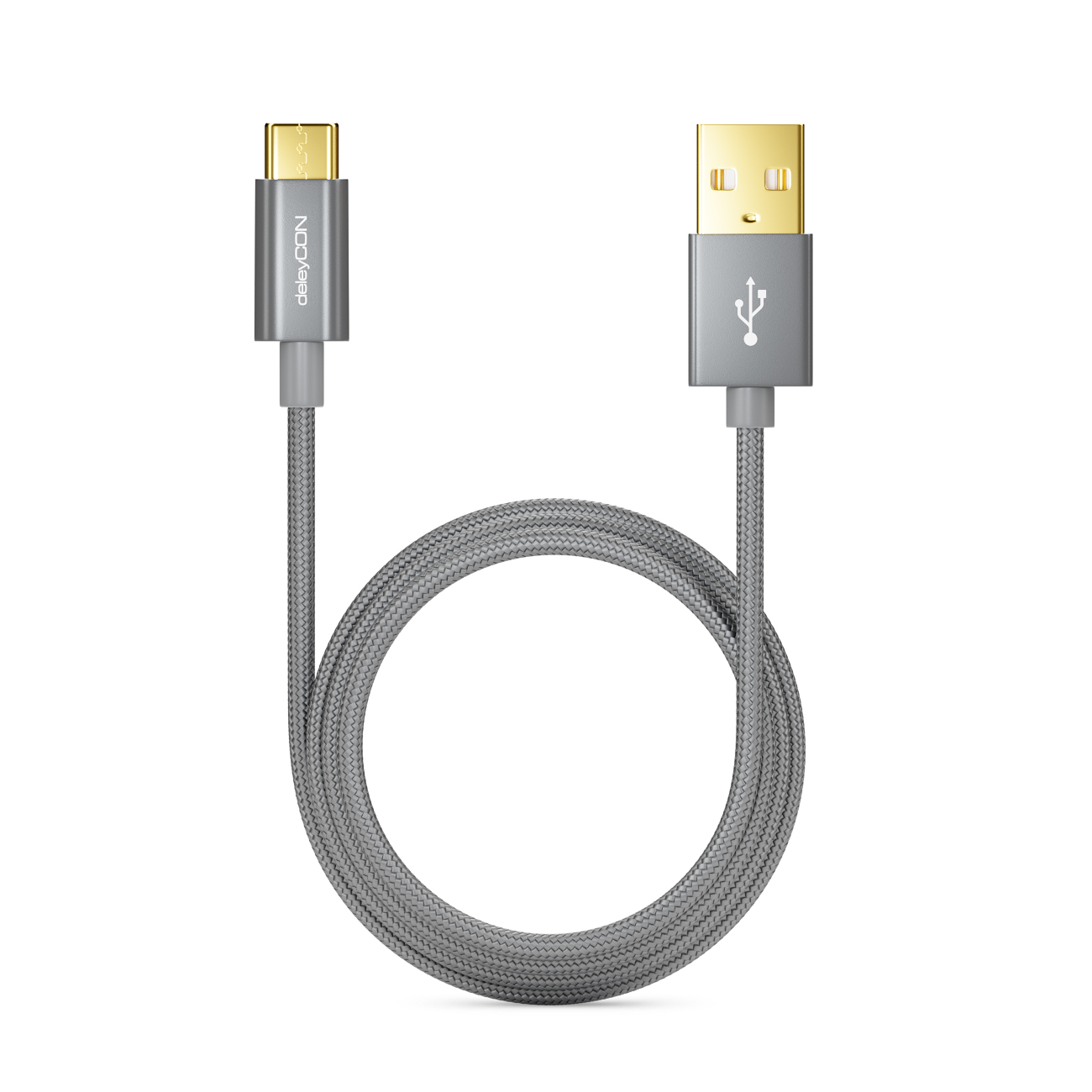 deleyCON USB C Kabel 2m Nylon + Metallstecker auf USB 2.0 (Typ-A) - Grau