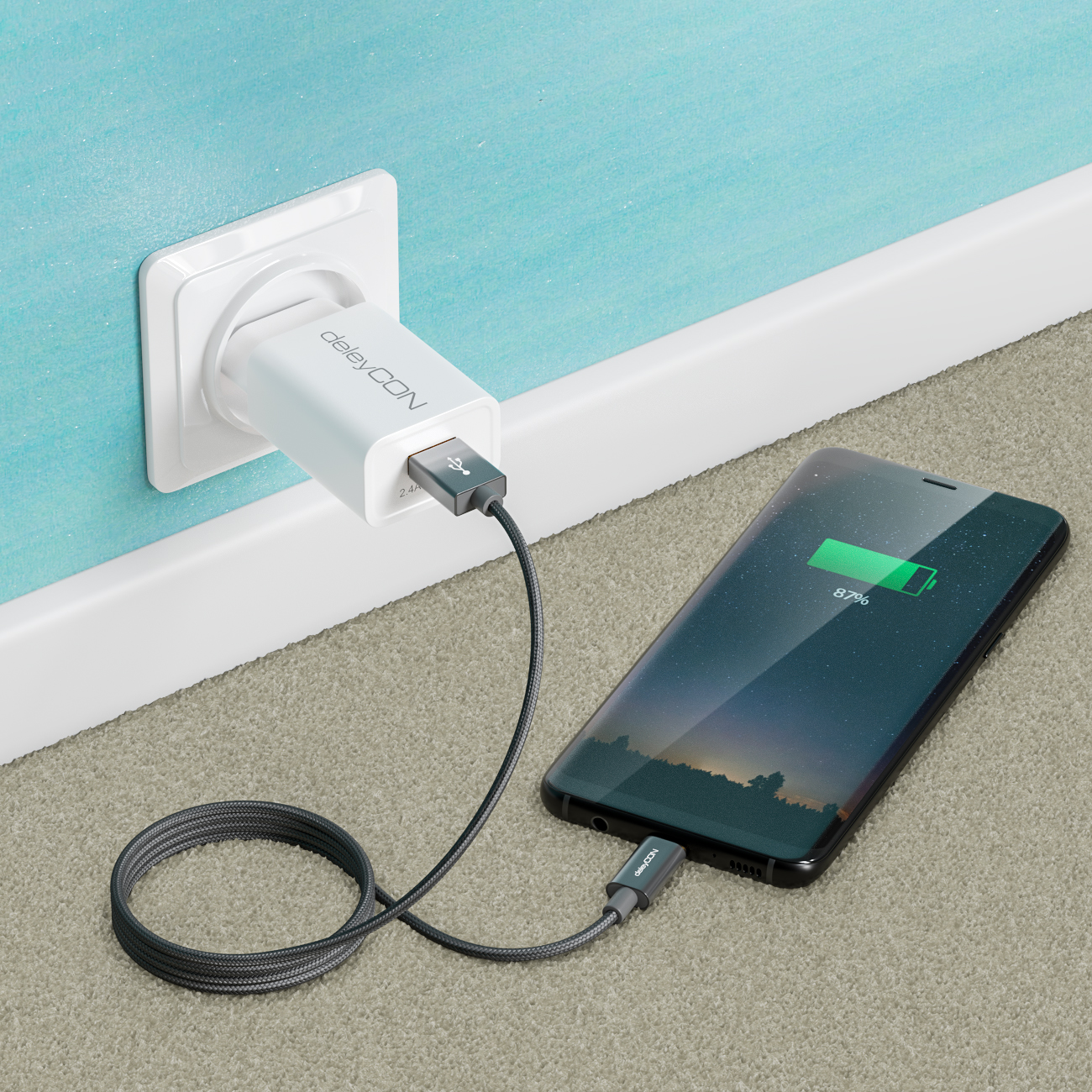 deleyCON 3,0m USB C Kabel PD3.0 60W Schnellladekabel USB-C Ladekabel für iPhone
