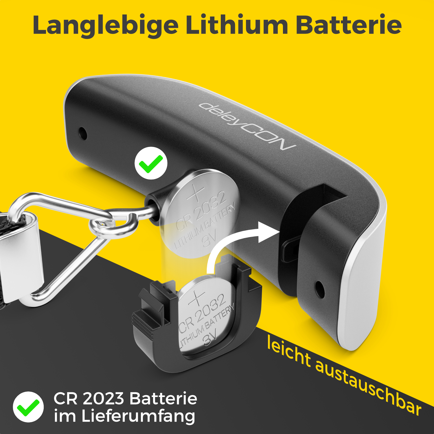 - Stromversorgung: 1× CR2032 Knopfzelle (enthalten)